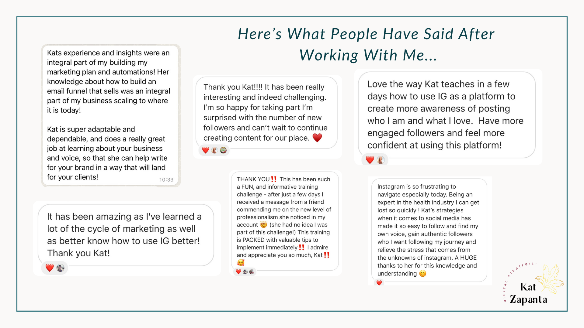 Kat is super adaptable and dependable, and does a really great job at learning about your business and voice, so that she can help write for your brand in a way that will land for your clients!”